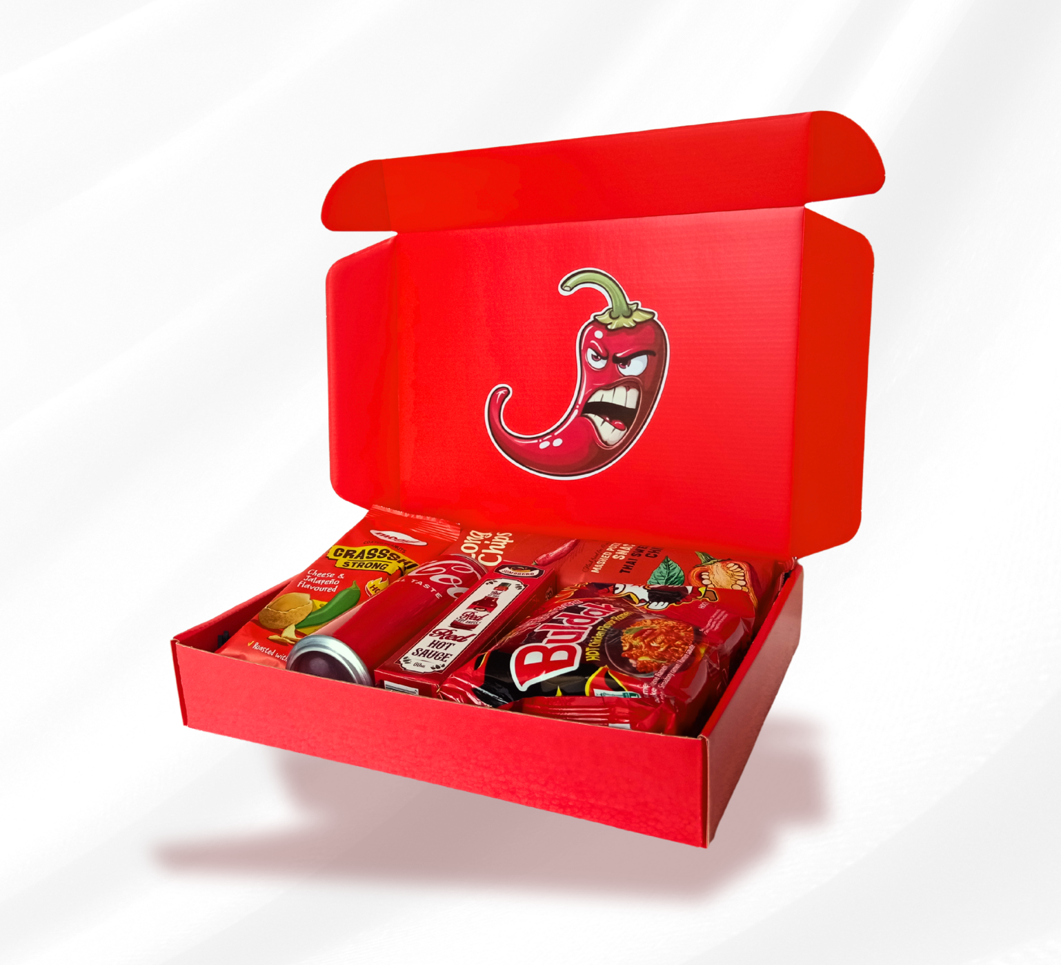 Red Hot Chilli Box to idealny zestaw dla fanów ostrej jazdy – ogień, kapsaicyna i chrupiąca satysfakcja, zapakowane w soczystą czerwień.